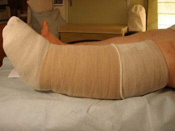 A course of CDT could run for between 5 to 20 (or more) consecutive days. During CDT, it is necessary that patients wear loose fitting clothing to accommodate our multi-layered compression bandages. Bandages will remain on the treated limb for approximately 22 hours each day during the entire course of CDT, only being removed during treatment. Most patients are able to function unimpeded during this time, with only minor restrictions. Although a time intensive process, CDT is the primary means by which this type of result can be achieved.